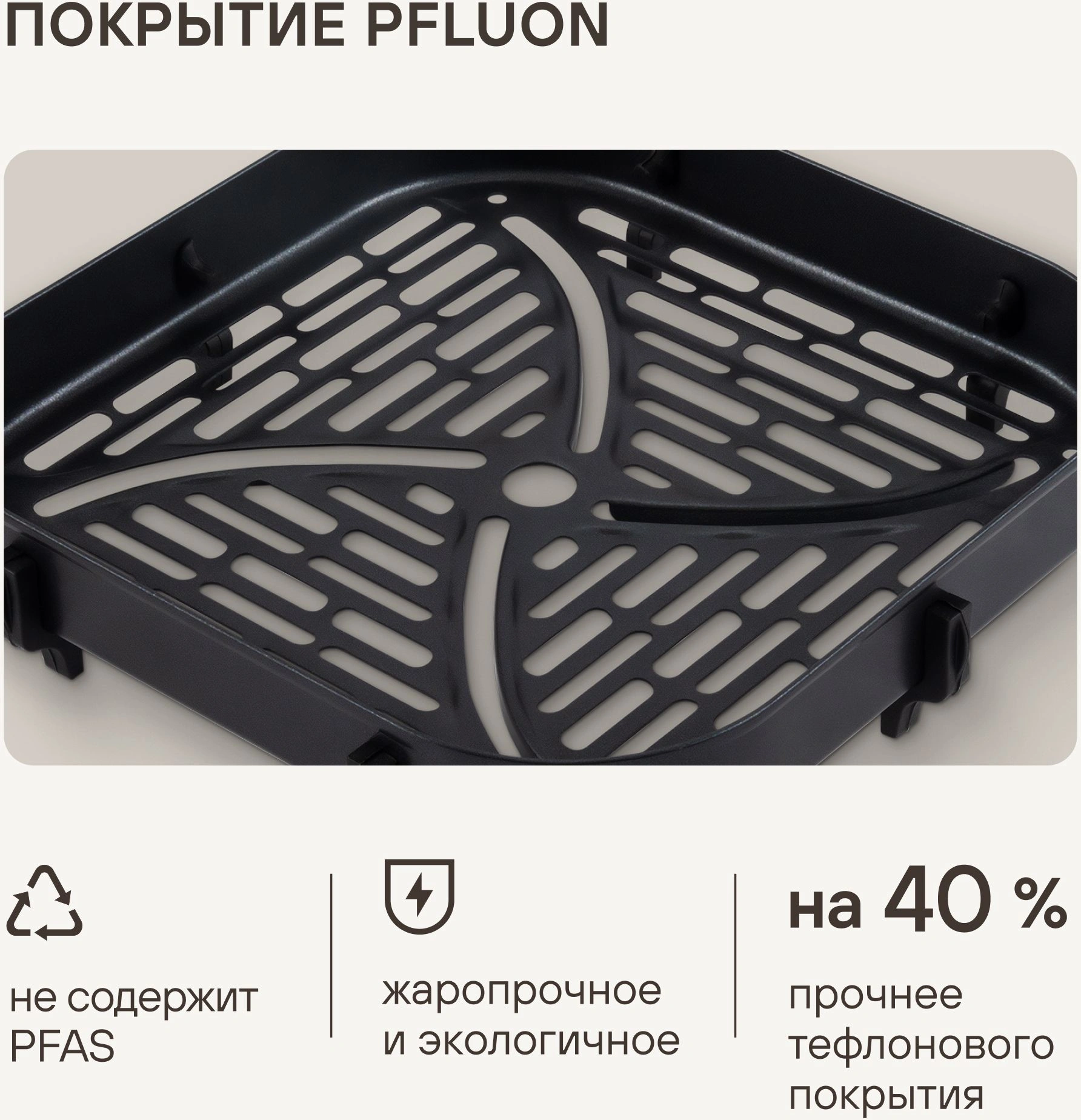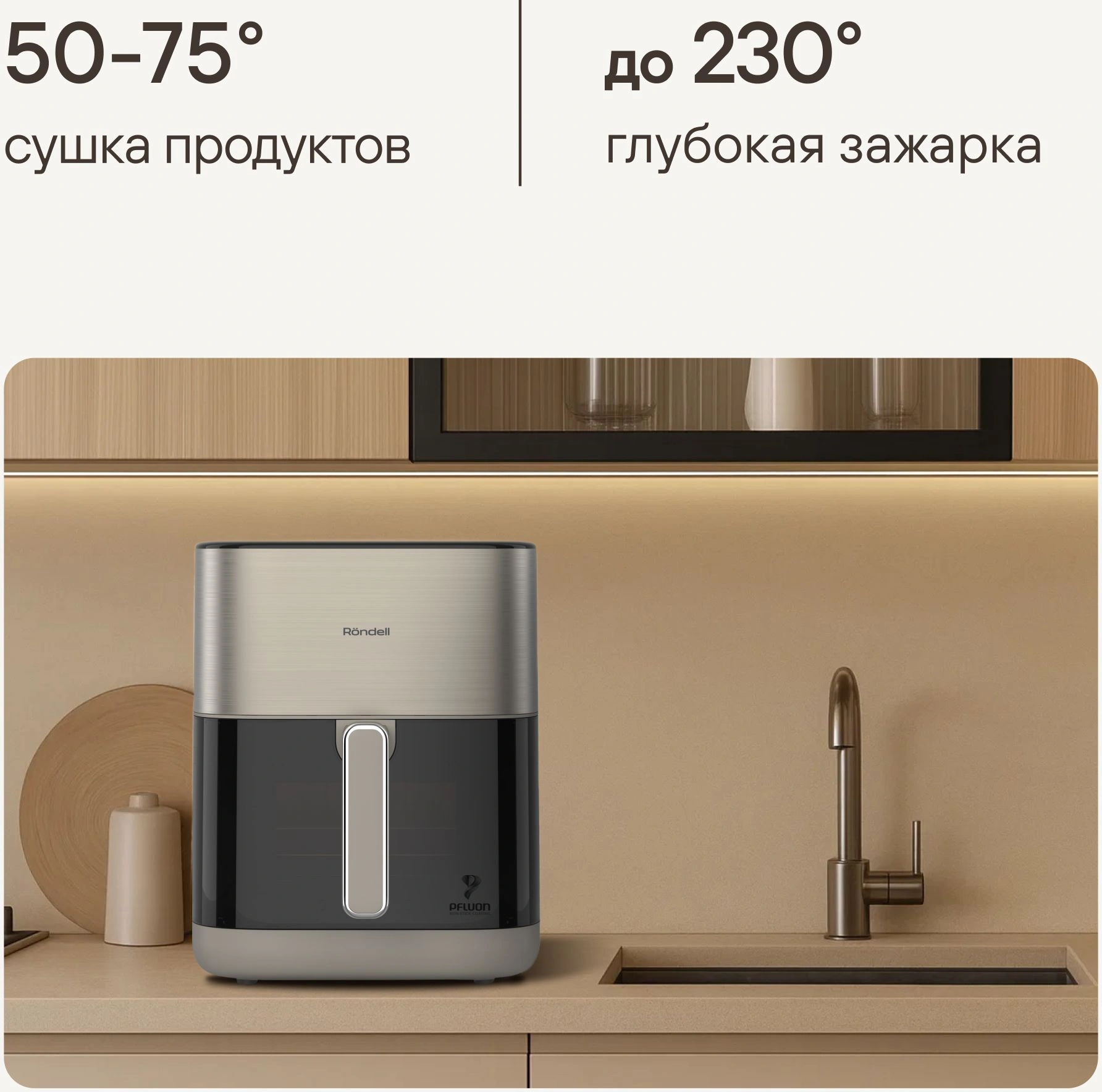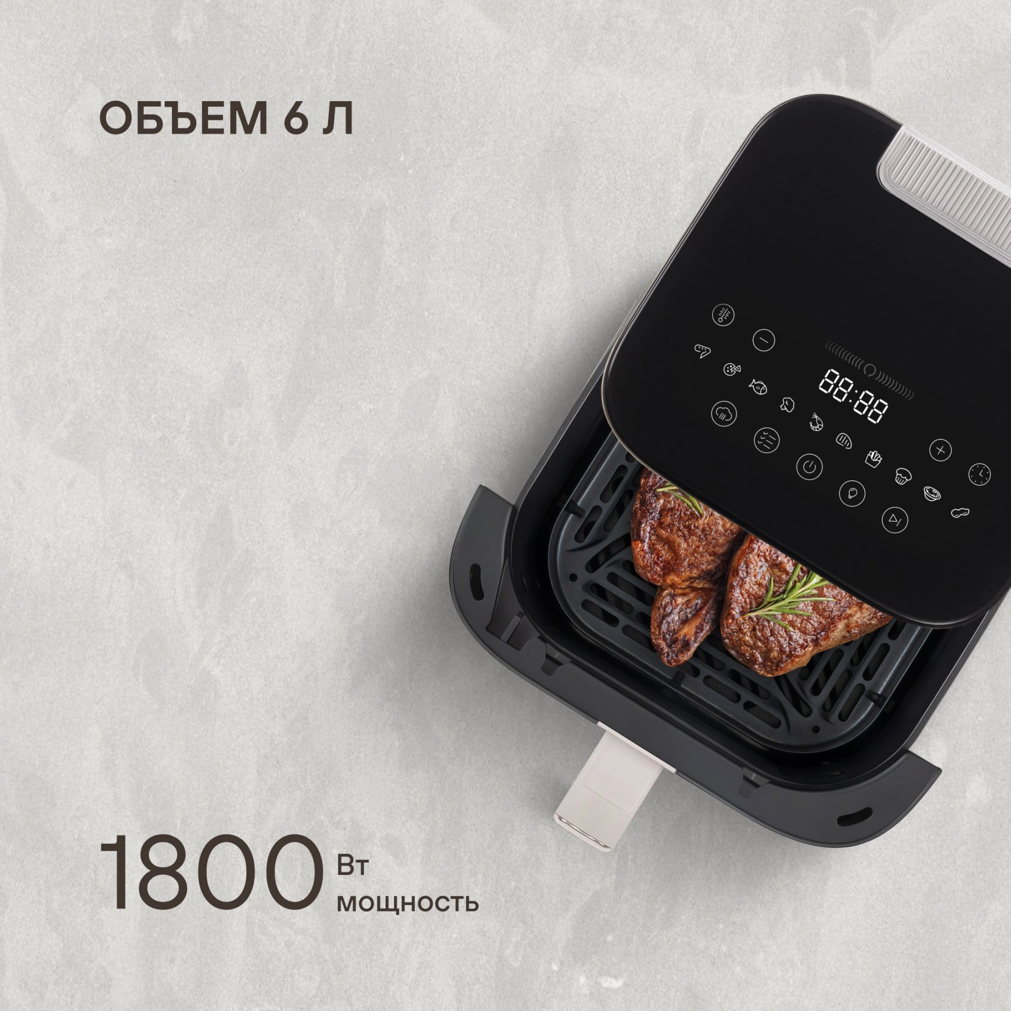 Благодаря системе циркуляции горячего воздуха 360°, продукты обжариваются равномерно, получаясь нежными внутри и с хрустящей корочкой снаружи.